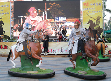 該項目?jì)群偧?、娛?lè )、健康、文化等多元素,是劍術(shù)和馬術(shù)的完美結合。競技者身穿復古盔甲,手持復合劍,騎行并自控機械仿真馬,在規定時(shí)間內,與對手進(jìn)行競技;同時(shí),競技雙方的各自得分,經(jīng)計分系統處理,成績(jì)由計分屏同步顯示并形成文字記錄。